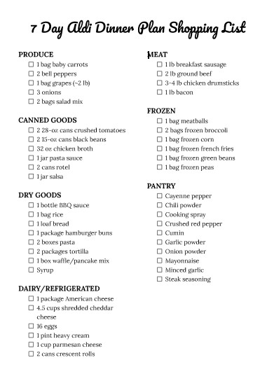 Home > Frugal Living > 7 Day Aldi Dinner Plan (with shopping list!)