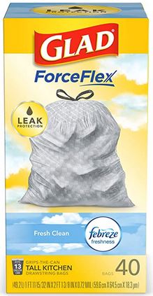 Glad Force Flex Trash Bags, Tall Kitchen, 40 ct. $7.77 (reg. $9.21)