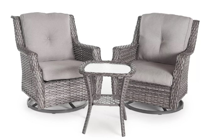3-Piece All-Weather Wicker Cushioned Patio Glider & Side Table Set – $487.49 (reg. $650)