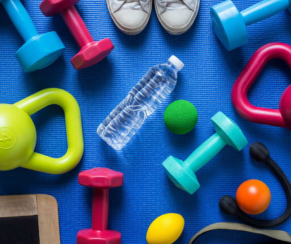 Resolution aids (diet cookbooks, exercise equipments, budget books, cleaners)
