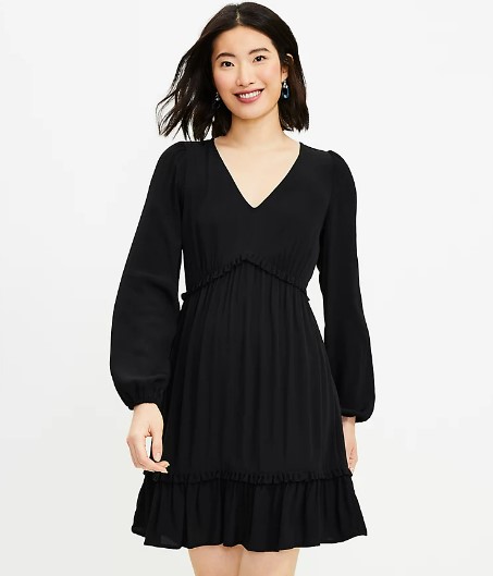 Ruffle V-Neck Swing Dress in Black – $34.99 (reg. $89.95)