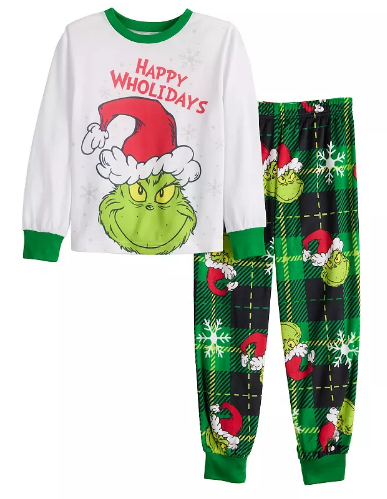 Kids 4-12 Jammies For Your Families® Grinch Happy Wholidays Pajama Top & Pajama Bottoms Set $16 (reg. $40)