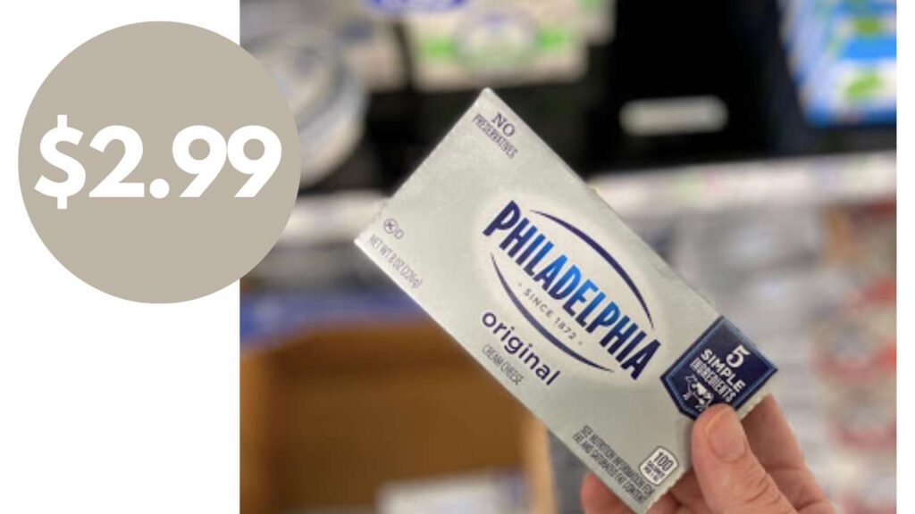 - Philadelphia Cream Cheese Spread, 7.5-8 oz, $2.99 with eCoupon, limit 5 per transaction