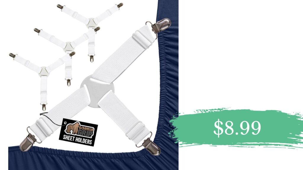 GORILLA GRIP Patent Pending Bed Sheet Holders 4pk – $8.99 (reg. $19)