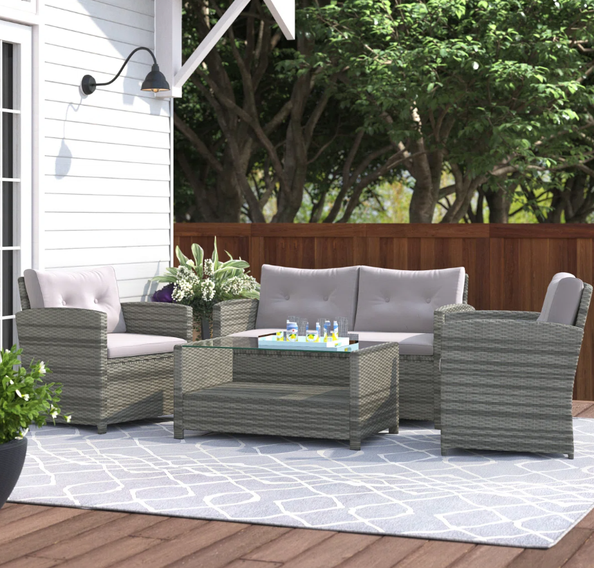 Anyuta Wood 4 – Person Patio Conversation Sets with Cushions – $529.99 (reg. $1,008)