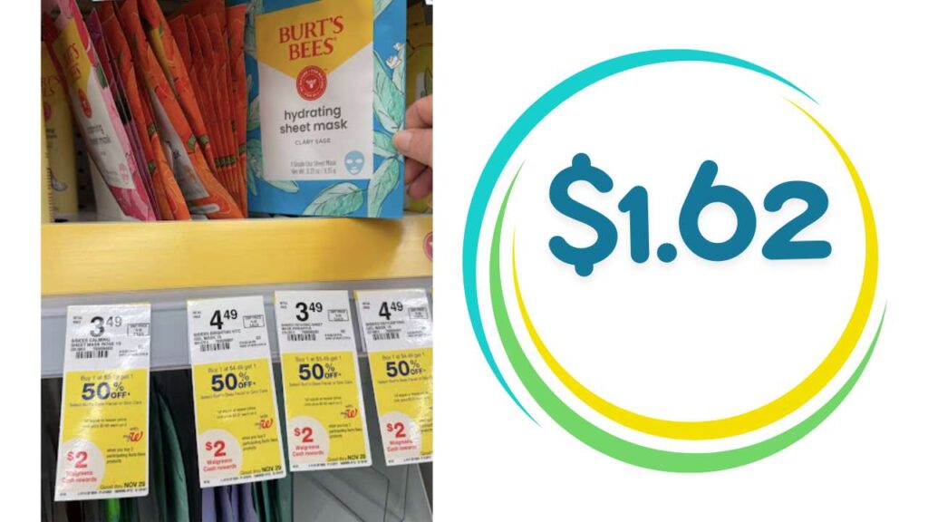 Head into Walgreens this week and get a super simple savings on Burt’s Bees skincare, no coupons needed. Buy two B1G1 50% off Sheet Masks and get back $2 in Walgreens Cash, making them just $1.62 each! Time for a spa day!