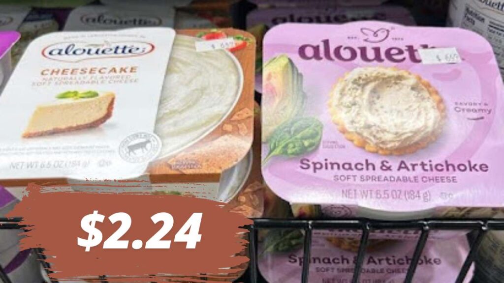 - Alouette Spreadable Cheese, 6.5 oz, B1G1 at $6.49 ($3.24)
