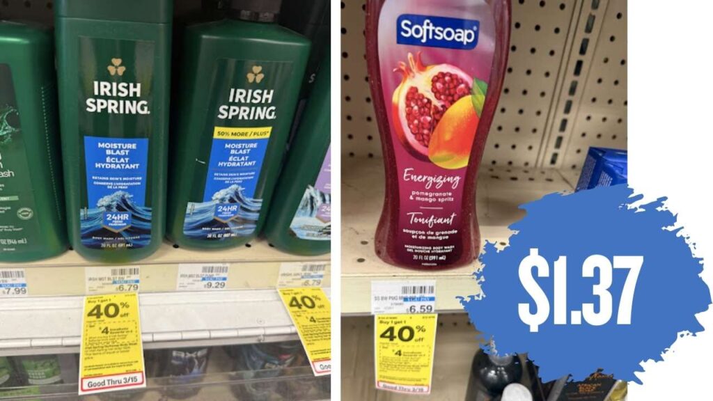 - $3 RR wyb (2) Softsoap or Irish Spring Bath Care or Hand Soap, $5.99