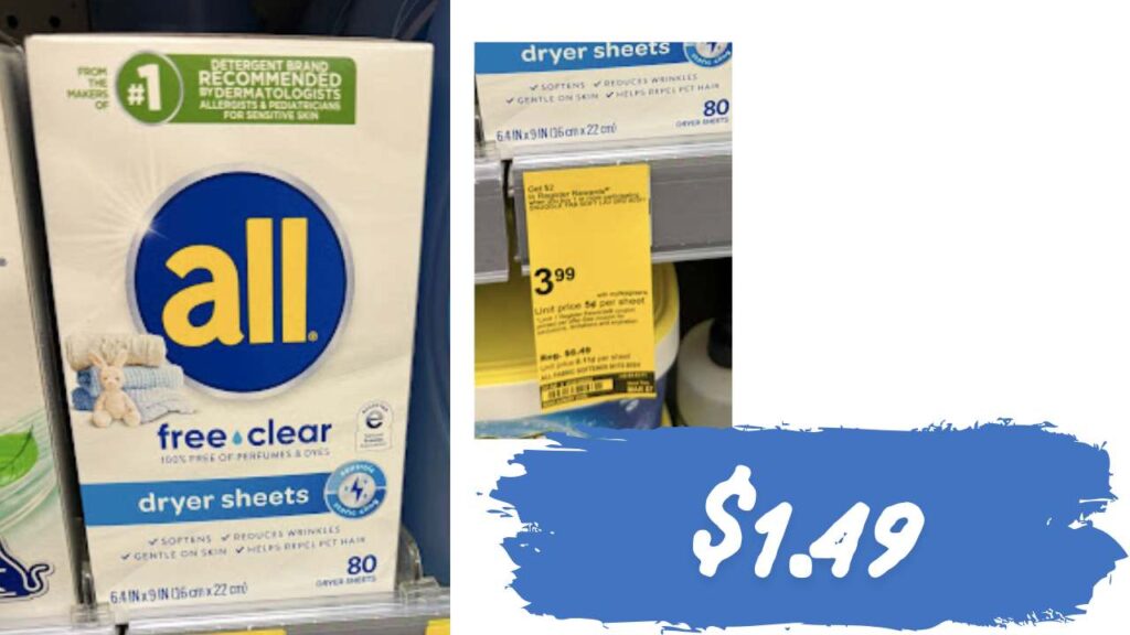 Head into Walgreens this week and stock your laundry room for a great price! Combine a Register Rewards deal with an Ibotta rebate and score All Dryer Sheets for just $1.49!