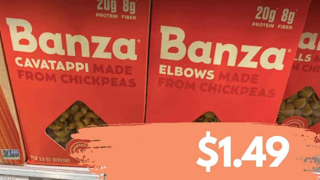 - Banza Pasta, 8 oz, B1G1 at $3.99 ($1.99)