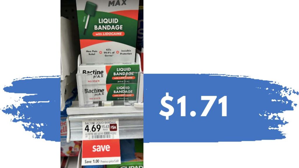 -$2.99 off Bactine MAX Liquid Bandage with Lidocaine, 0.3 oz only, limit 5, at CVS, Food Lion, Walmart, Walgreens, Publix, Ibotta mobile app