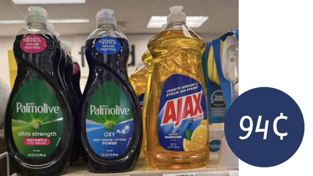 Stock up on household cleaning products at CVS this week! Right now you can grab a bottle of Palmolive and Ajax Dish Liquid for just 94¢ each when you use coupons with an ExtraCare Bucks deal.