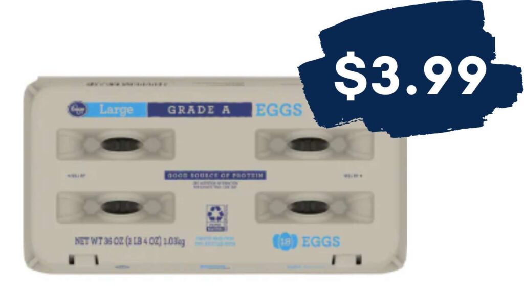 - Kroger Large Eggs, 18 ct., $1.99 with eCoupon, limit 5