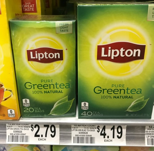 We’ve been using Lipton Green tea to get an extra caffeine boost in the morning, and Lipton decaffeinated in the afternoon. They also make Lipton Green tea with fruit flavors (though I still like the fun of adding my extra berries).