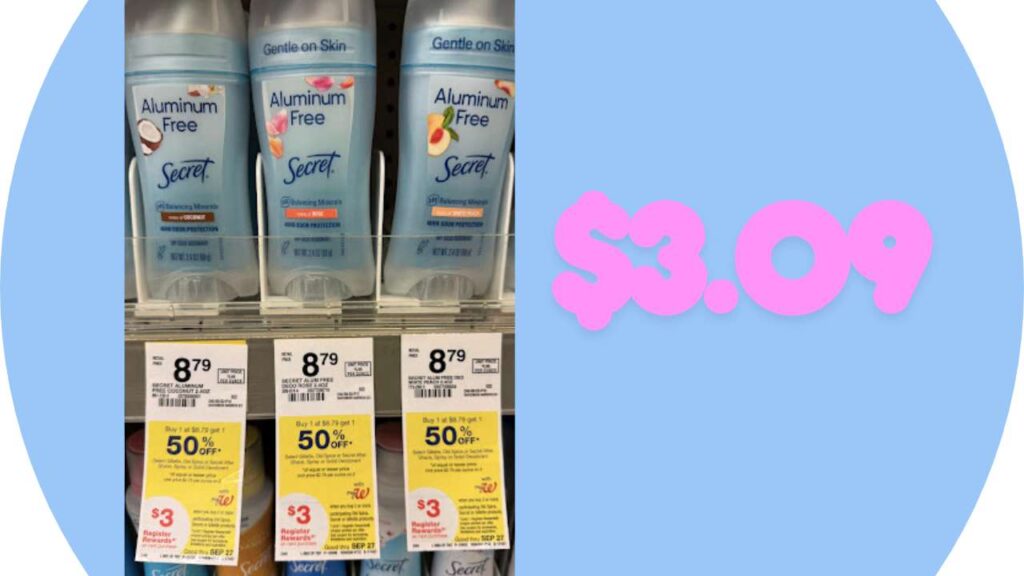 There’s a great deal on Secret Aluminum-Free Deodorant at Walgreens for the rest of the month – – use an insert coupon, and after Register Rewards you get deodorant for just $3.09!