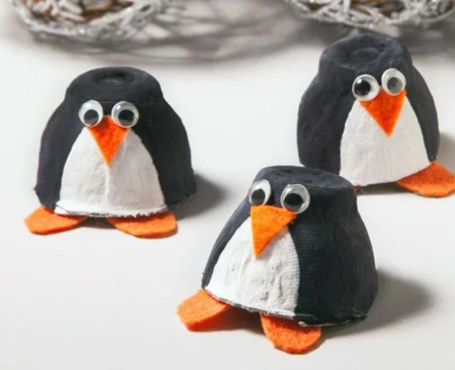 If you have enough egg cartons, you could make a whole family of penguins. All you need extra are eyes, felt for the mouth and feet, and some paint!
