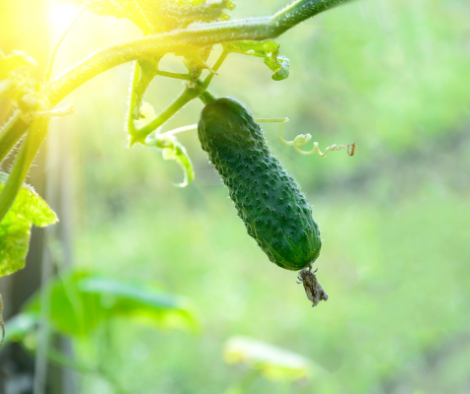 Cucumbers enjoy lots of sunshine and moist soil. They can do well in large containers, too.
