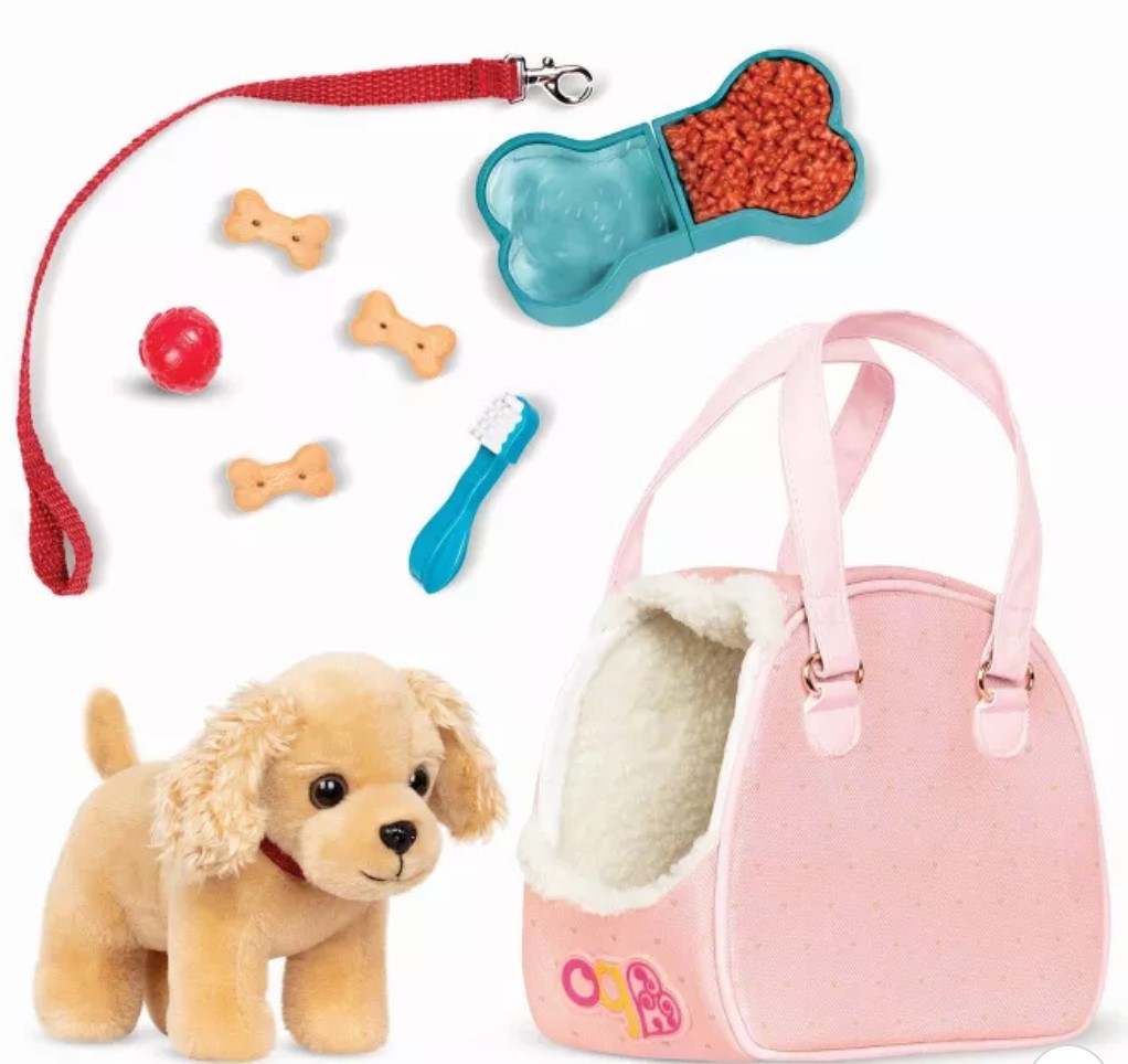 Hop In Dog Carrier & Pet Plush Puppy for 18″ Dolls – $17.99