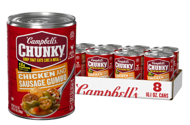 Campbell’s Chunky Soup, Chicken and Sausage Gumbo, 16.1 oz Can (Case of 8) – $10.18