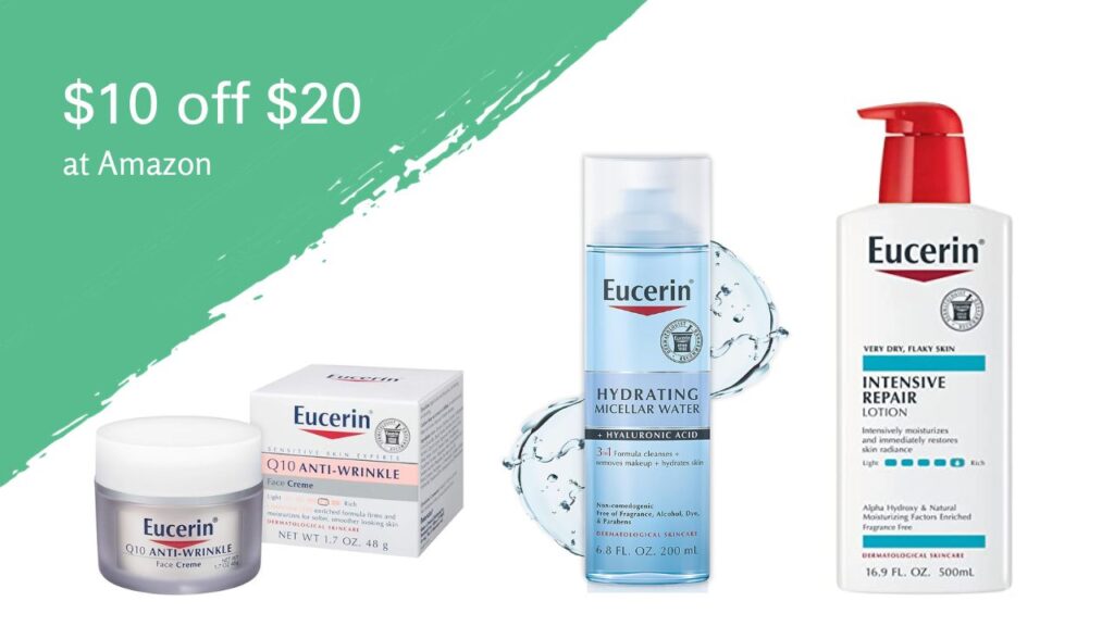 Amazon is offering $10 off $20 Eucerin Skincare products. There are over 20 qualifying items. Plus, get an extra 20% off select products!