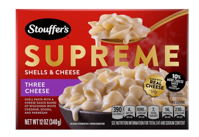 Stouffer’s Supreme Shells And Cheese, Three Cheese, Boxed Mac & Cheese Dinner Kit 12 oz – $2.96