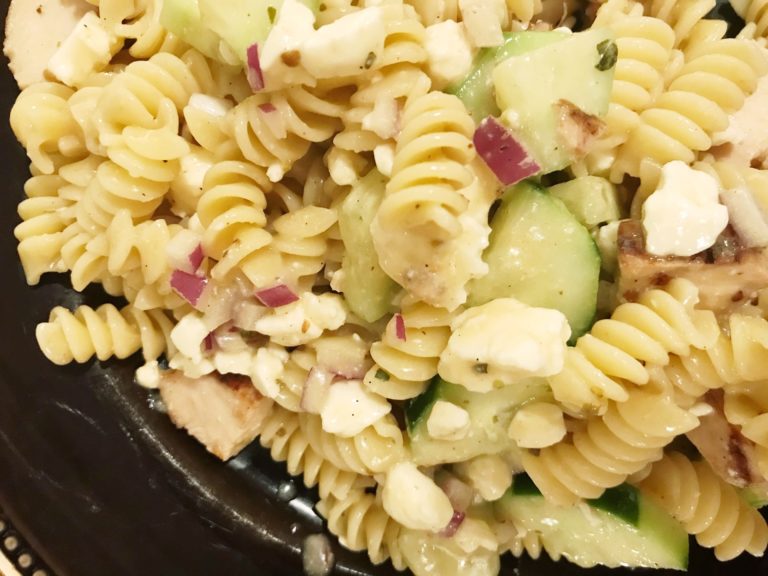 This greek pasta salad can be the main dish for a meal, and it is delicious if you add some cucumbers from your garden!