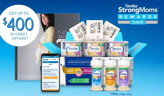 Sign up for the samples and coupons from Similac (Similac StrongMoms Rewards) and Enfamil (Enfamil Family Beginnings).