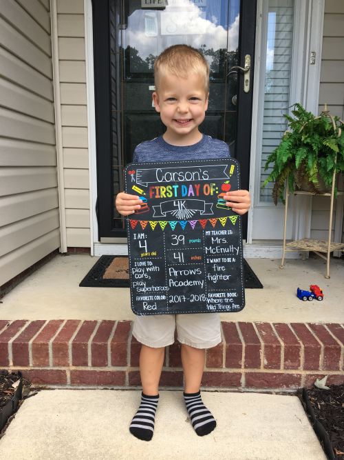 We do this for other special occasions, too (like Mother’s Day—for years my kids, when asked my age, would say “3”), and it’s just as fun on the first day of school.