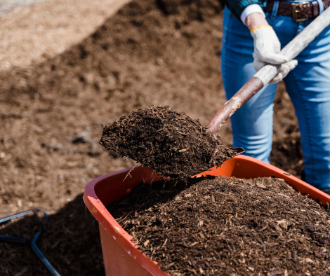 Turn and aerate your compost pile. Add kitchen scraps, leaves, and other compostable materials.