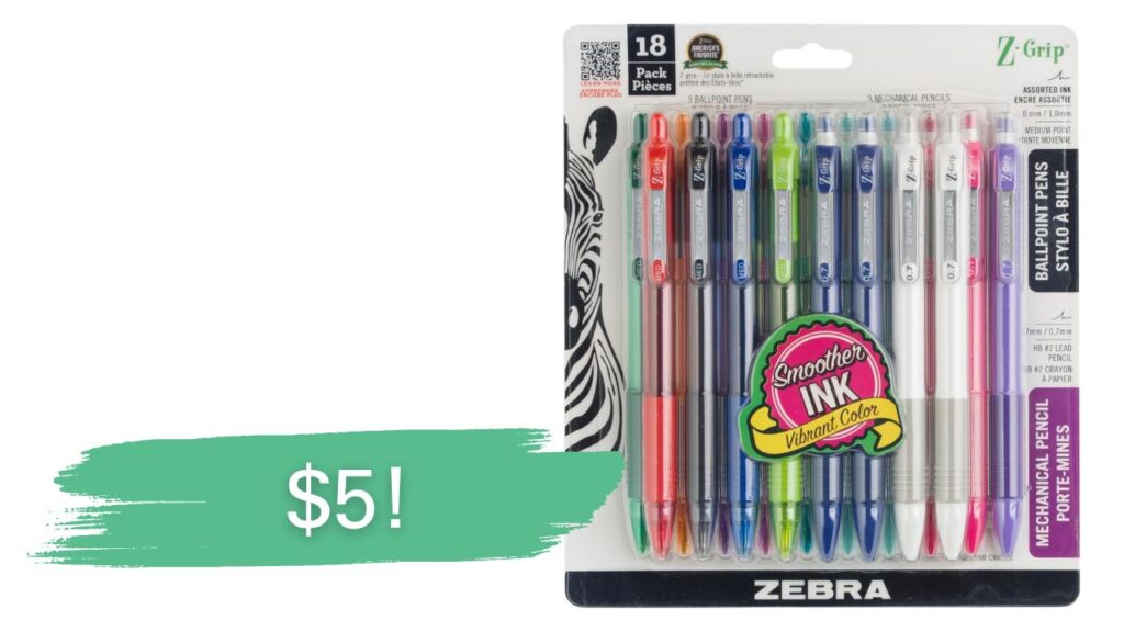 Grab a nice deal on this Zebra Pen Z-Grip 18-Pack at Amazon. Regularly $10, they are now on sale for $5! Includes 9 Ballpoint Pens and 9 Mechanical Pencils.