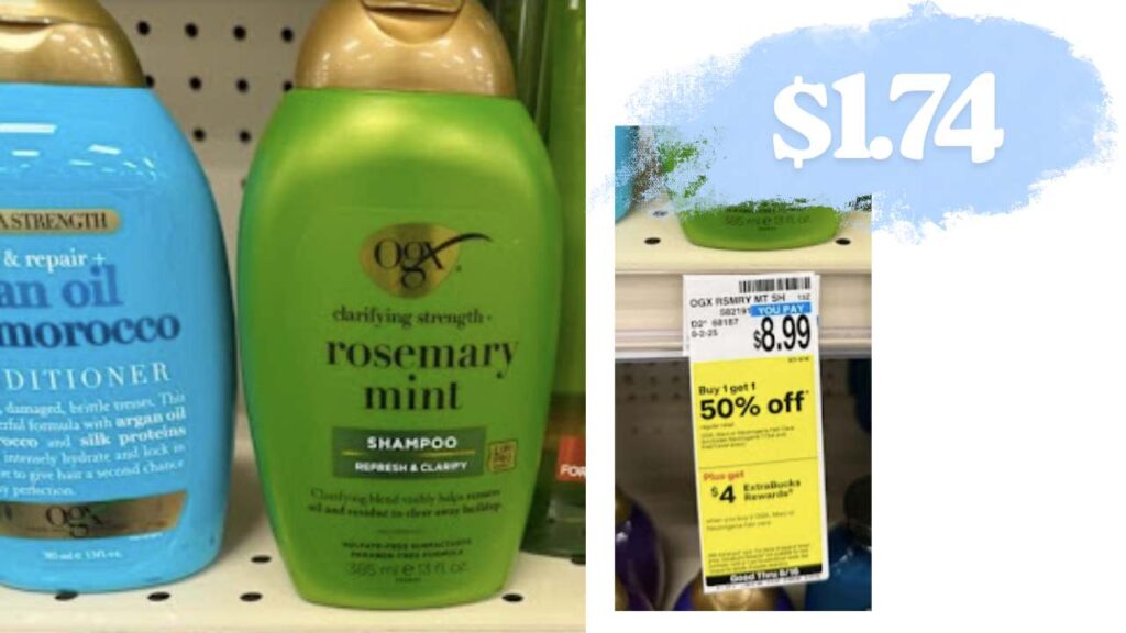 When you buy two OGX haircare products at CVS right now you’ll get them B1G1 40% off plus $4 ExtraCare Bucks back. Add in an eCoupon and pick up high-value haircare for only $3.19!