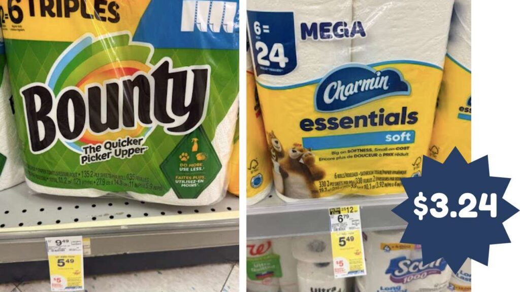 - $5 RR wyb (4) select Bounty, Puffs or Charmin Household Products, $5.49