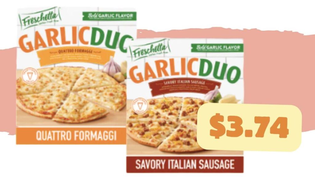 - Freschetta Garlic Duo Pizza, selected, 18.85-20.35 oz, $4.99