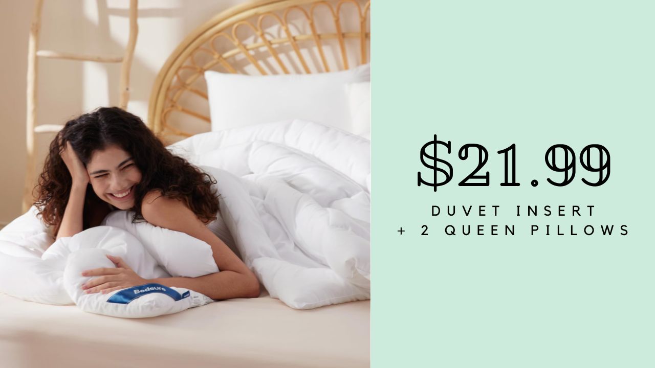 Right now, speed to Amazon where they’re offering buy one, get one select bedding. This means you can get (2) queen pillows and a duvet insert for as low as $21.99 for both!