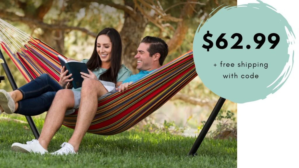 Head over to Best Choice Products where you can get a 2-person Brazilian-Style Double Hammock with Portable Carrying Bag for $62.99 (reg. $120) shipped when you use coupon code BCPHAMMOCK.