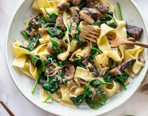 Mushroom Spinach Pasta with Shallots | Family Style Food