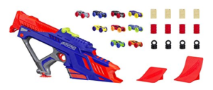 This Nerf gun doesn’t shoot darts, but cars! Your kids can make the cars do some fun tricks when it shoots out of the rapid-blasting Nerf gun. They can set up targets and obstacles for the cars to demolish. This set includes a blaster, 9 foam cars with plastic wheels, 12 obstacles, high-jump ramp and a long-jump ramp.