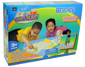 Bring sand indoors with this no-mess playtime. Sand in this set can be molded into shapes over and over again and it’s 100% non-toxic, anti-bacterial and consists of all natural ingredients. It’s completely dry to the touch and your kids will be amazed.