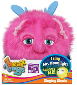 The Beat Bugs Glowies are cute little creatures inspired by the Emmy award winning Netflix show and they sing songs from The Beatles. This particular Glowie will sing your little one Mr. Moonlight. Just squeeze the Glowie and she’ll start singing.