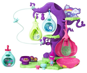 Kids can build and explore their own version of the Trolls village with the Troll Tree. It’s over 16 inches tall and you can customize the tree by moving around the pods. To movie around the tree, the Trolls will clip their hair to the zipline. The tree also has a slide for the Trolls to get down quickly.