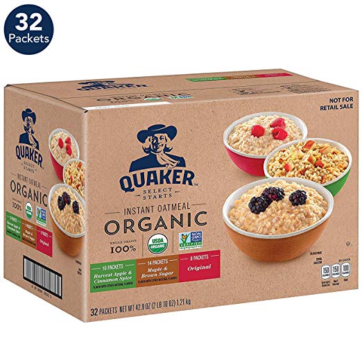 Quaker Instant Organic Oatmeal, 32 ct., $8.39