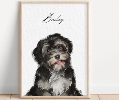 Etsy offers tons of custom pet portraits (above is just one example) which could be a lovely gift for someone who recently lost a pet.
