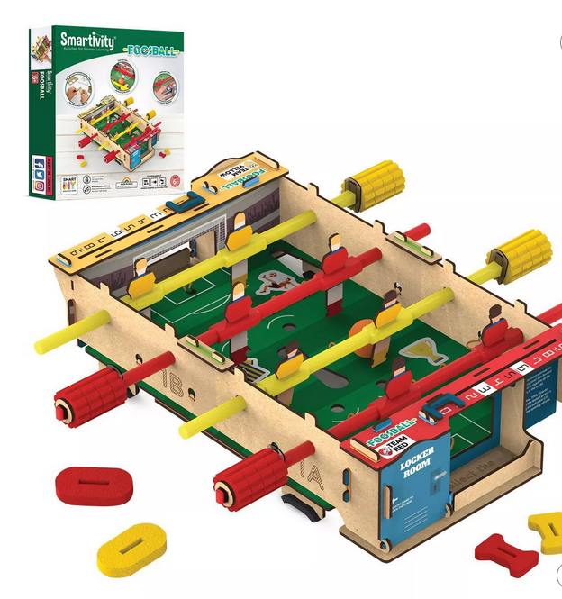 This kit lets kids build their own small foosball table!