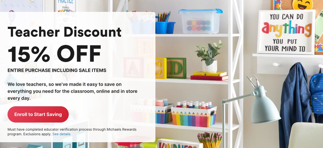 Teachers get an additional 15% off your entire in-store purchase with valid teacher ID. This includes sale items. Details here.
