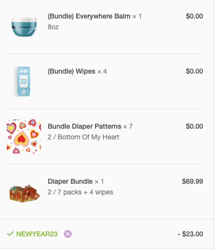 Right now Hello Bello is offering all new customers $23 off their first diaper & wipes bundle with code NEWYEAR23 at checkout.