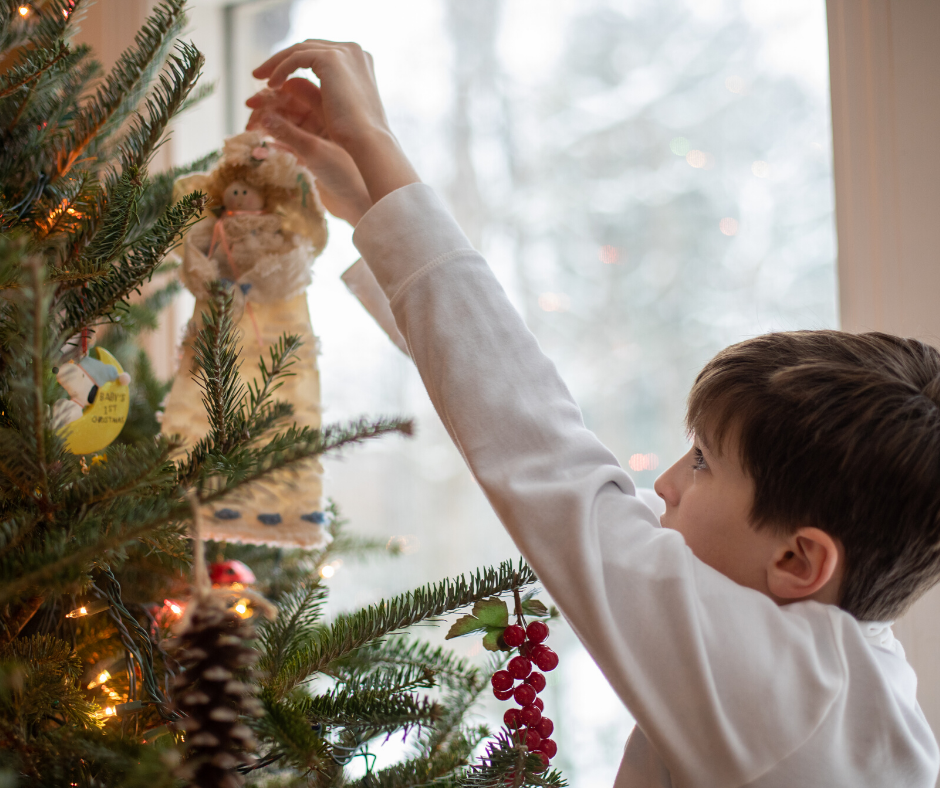 My husband inherited almost an entire tree of ornaments that he had been given as a child. As we decorate the tree each year, it’s fun for our kids to see his childhood ornaments. As a result, one fun tradition is to give each child an ornament or let them pick one out. I like to pick them out on my own and put them in their stockings. They don’t normally make it on the tree that year, but the next year it’s fun for each child to put their own ornaments on the tree.