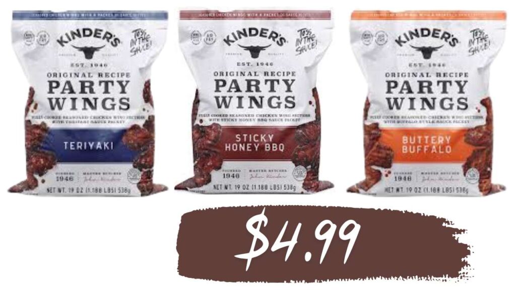 • Kinder’s Party Chicken Wings, 19 oz, B1G1 at $12.99 ($6.49)