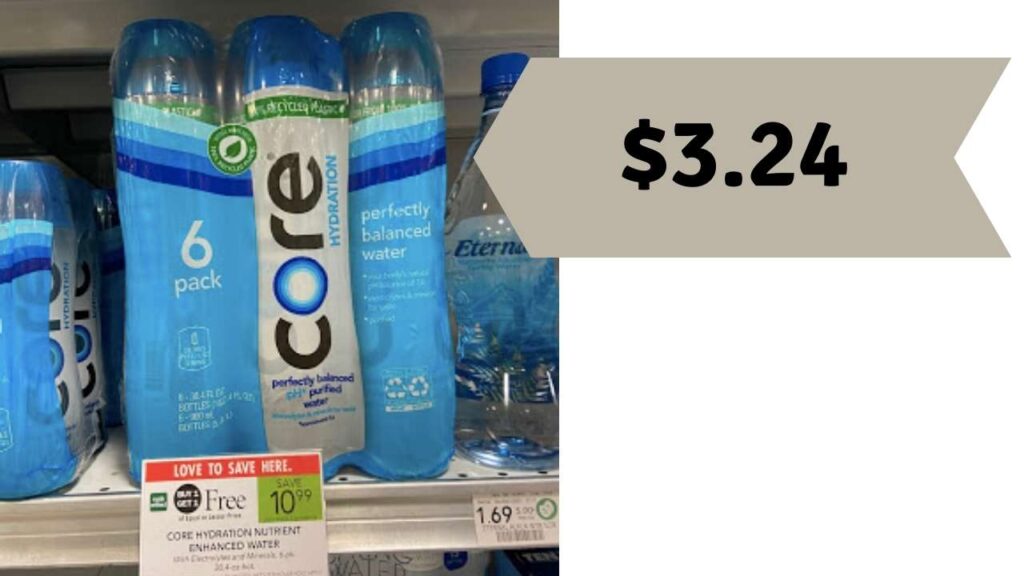 - Core Hydration Nutrient Enhanced Water with Electrolytes and Minerals 6 pk 30.4 oz, B1G1 at $10.99 ($5.49)