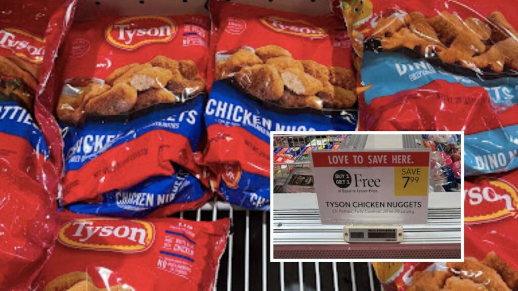 - Tyson Chicken Nuggets or Patties Fully Cooked, 20-29 oz, B1G1 at $7.99 ($3.99)