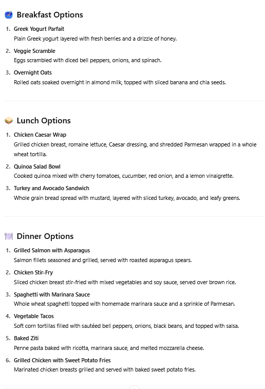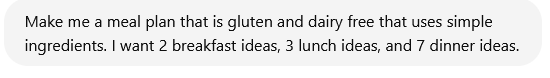 - Ask it to make a shopping list based on the meal plan it comes up with.